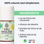 Lorsque l'on compare l'eau exquise Citron Menthe - La Bio aux autres eaux aromatisées, la différence est limpide. Eau exquise propose des ingrédients 100% naturels, sans additifs artificiels, produits chimiques ou sucres.