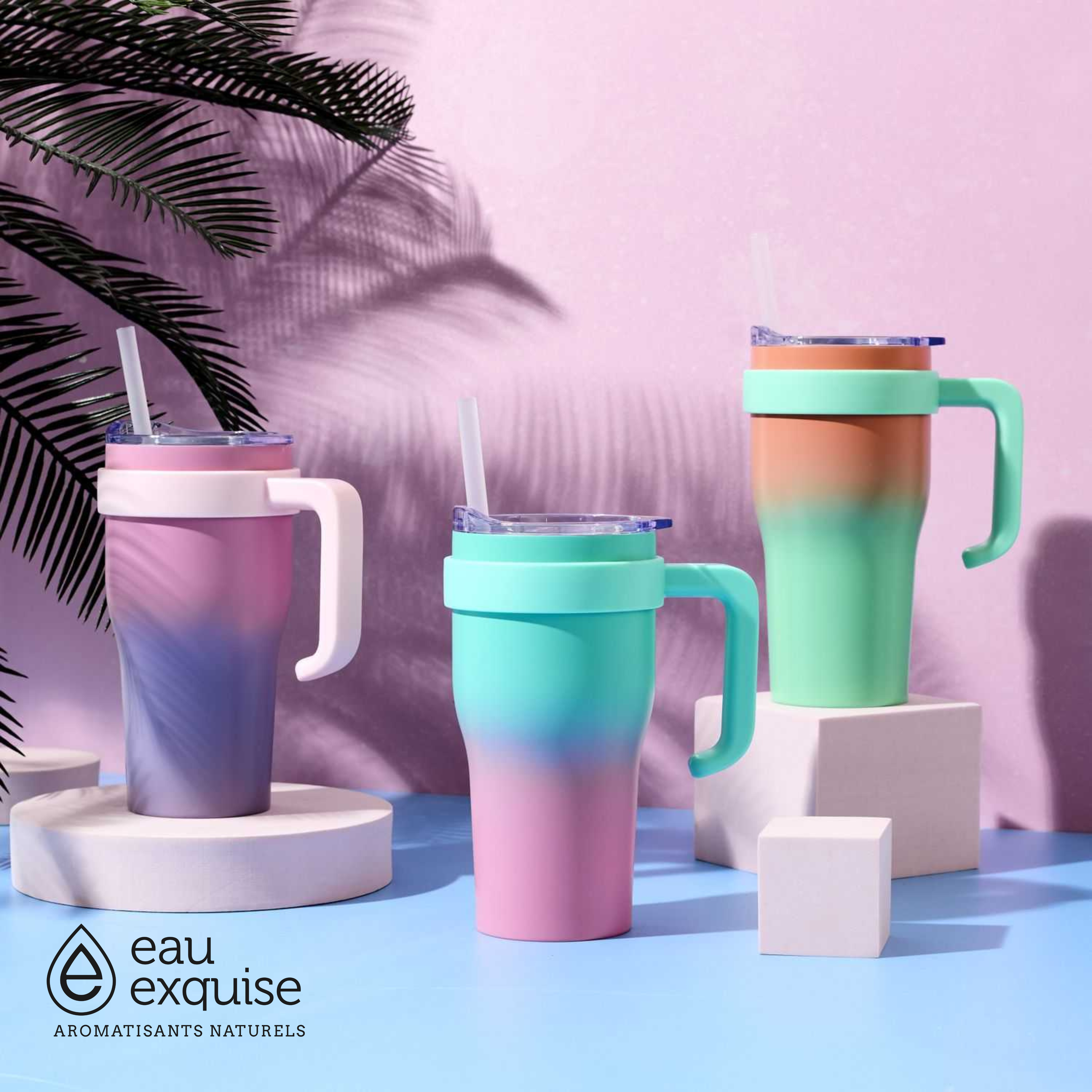 Et pour compléter votre routine Eau Exquise : la mini fiole, le mini étui… et désormais, le mug tie & dye à emporter partout.